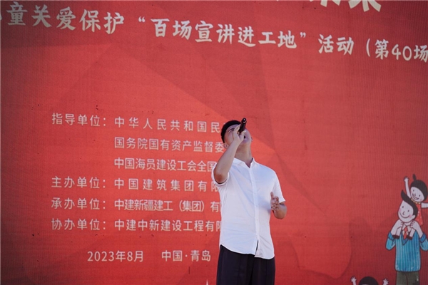 嶗山區(qū)建設(shè)工程管理服務(wù)中心綜合科科長王澤洋,中建中新黨委副書記、工會主席孫華泓等領(lǐng)導(dǎo)出席活動,項目一線建設(shè)者、活動宣講志愿者代表,以及兒童和父母代表等110余人現(xiàn)場參與活動。