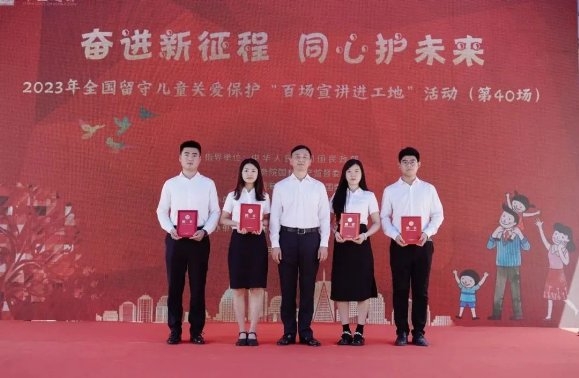 為2023年度全國留守兒童關(guān)愛保護“百場宣講進工地”活動志愿者頒發(fā)聘書