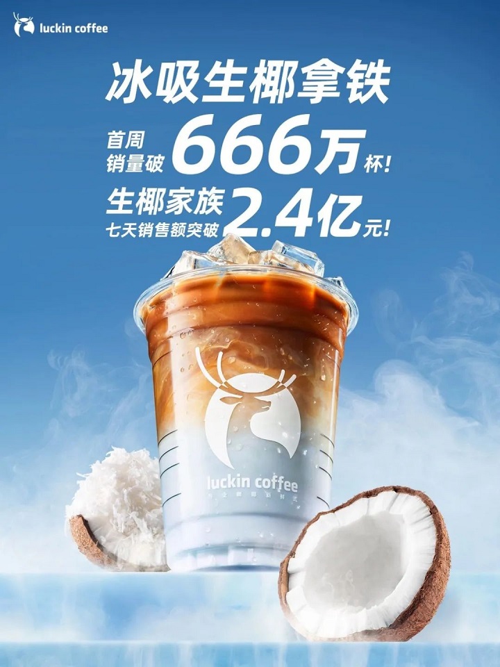 數(shù)據(jù)是最好的證明:近日,瑞幸官方宣布「生椰拿鐵」上市兩周年銷量已突破3億杯!最近另一款新品「冰吸生椰拿鐵」,上市一周銷量就突破了666萬杯,打破了2022年10月由「生酪拿鐵」創(chuàng)下的上市一周659萬杯的新品銷量紀(jì)錄。