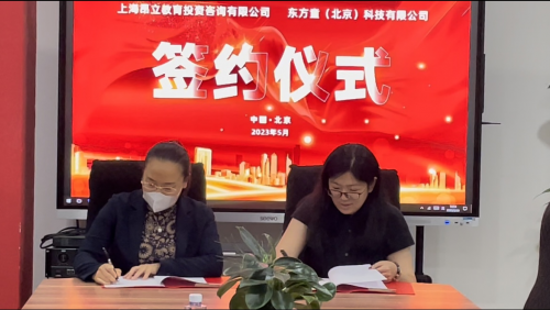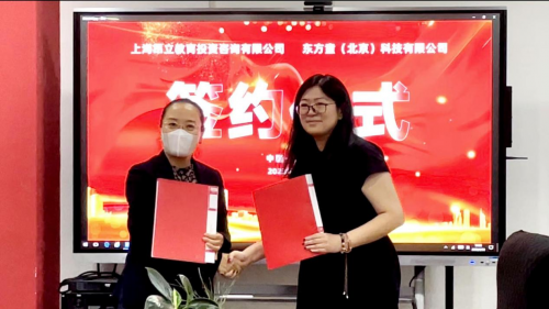 東方童(北京)科技有限公司文化傳媒事業(yè)部總經(jīng)理尹健穎、上海昂立教育投資咨詢有限公司研學(xué)項目負責人金玫伶舉行簽約儀式