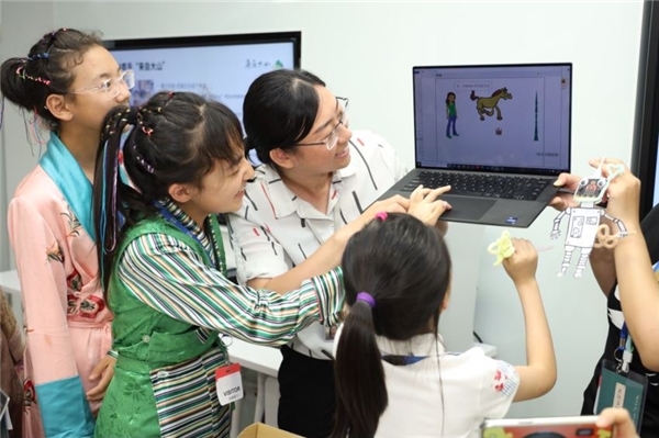 ( 少數(shù)民族學(xué)生現(xiàn)場體驗(yàn)編程互動 )