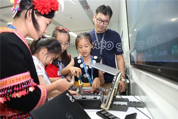 ( 少數(shù)民族學(xué)生觀看并參與電腦產(chǎn)品的實(shí)地拆解環(huán)節(jié) )