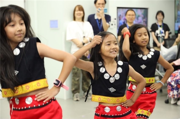 在后續(xù)的活動中,孩子們向企業(yè)志愿者們展示了他們各民族的才藝。來自佤族的孩子向志愿者們展現(xiàn)了傳統(tǒng)的甩發(fā)舞,佤族人民以長發(fā)為美,佤族姑娘們伴隨著鼓點(diǎn)鮮明的音樂,甩動起來的長發(fā)就像飄著的一塊塊黑綢緞,飄逸大氣,野性十足,自信展現(xiàn)著本民族獨(dú)特的文化魅力。來自納西族的孩子們帶著志愿者認(rèn)識他們的傳統(tǒng)文字——東巴文,這是世界上唯一一種還在使用的象形文字,距今已有1200多年的歷史。志愿者們借助形象的圖像表達(dá)認(rèn)識了東巴文中的十二生肖動物文字,并和孩子們一起體驗(yàn)“東巴十二生肖”桌游,在充滿民族文化內(nèi)涵的益智游戲中,沉浸式感受納西族的智慧。各族青少年和企業(yè)志愿者們玩鬧在一起,活動會場內(nèi)回蕩著大家的歌聲、笑聲。