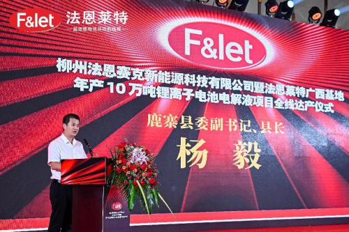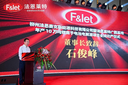 8月5日,柳州法恩賽克新能源科技有限公司暨法恩萊特廣西基地年產(chǎn)10萬噸鋰離子電池電解液項目全線達產(chǎn)儀式在廣西柳州盛大舉行。柳州市人民政府副市長湯振國,鹿寨縣人民政府縣長楊毅,法恩萊特公司董事長石俊峰,總經(jīng)理邵俊華等出席儀式,共同見證這一重要時刻。