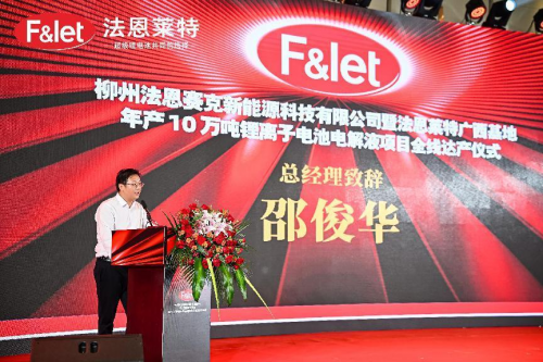 儀式上,法恩萊特邵俊華總經(jīng)理在致辭表示:柳州法恩賽克項目不僅是法恩萊特在華南區(qū)域作出的重大戰(zhàn)略部署,更是法恩萊特面向全球布局的重大舉措。法恩萊特將以此次項目全線達產(chǎn)為新的起點,發(fā)揮公司的技術、戰(zhàn)略、規(guī)模和品牌等優(yōu)勢,深耕細作新能源鋰電池行業(yè)材料電解液市場,深化新能源鋰電池行業(yè)更大范圍、更寬領域的務實合作,為新能源汽車、儲能系統(tǒng)、消費電池客戶提供更具優(yōu)勢、更高性能的超級鋰電池電解液解決方案,為新能源行業(yè)的持續(xù)創(chuàng)新貢獻更多力量。