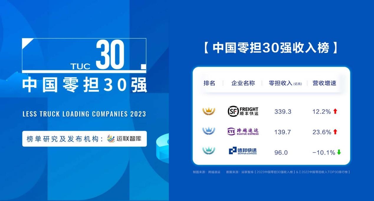 但,過去的16年時間里,就在大家認(rèn)為快遞領(lǐng)域的競爭進(jìn)入白熱化階段的時候,跨越卻加速崛起“后來居上”。8月9日,運聯(lián)智庫頒布2023中國零擔(dān)排行榜,跨越以139.7億總營收蟬聯(lián)榜單第二名(第一是順豐,第三是德邦),營收增速逆勢提升到23.6%,領(lǐng)跑榜單三甲企業(yè)(順豐12.2%,德邦-10.1%)。
