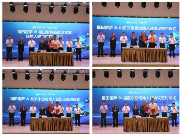 隨后,福田雷薩與福田歐輝新能源客車、宣化產業(yè)基地入駐供應商——山東艾泰克、福星東聯(lián)以及北京豐達進行場地入駐簽約。