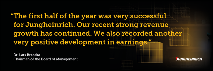永恒力集團(tuán)董事會(huì)主席Lars Brzoska博士解釋道:“今年上半年對(duì)永恒力而言可謂碩果累累。我們延續(xù)了近期營業(yè)收入強(qiáng)勁增長的勢(shì)頭。增幅達(dá)到了46%,我們?cè)谟矫嬖俅螌?shí)現(xiàn)了極為喜人的增長。通過收購Storage Solutions集團(tuán),我們?cè)诿绹浖芟到y(tǒng)和倉儲(chǔ)自動(dòng)化領(lǐng)域贏得了一個(gè)重要的增長點(diǎn)。這一點(diǎn)目前已首次體現(xiàn)在集團(tuán)的合并財(cái)務(wù)報(bào)表內(nèi)。我們繼續(xù)推進(jìn)實(shí)施2025+戰(zhàn)略,并確認(rèn)本年度的預(yù)測(cè)數(shù)據(jù)。永恒力已經(jīng)為迎接未來做好了充分的準(zhǔn)備?!?/p>