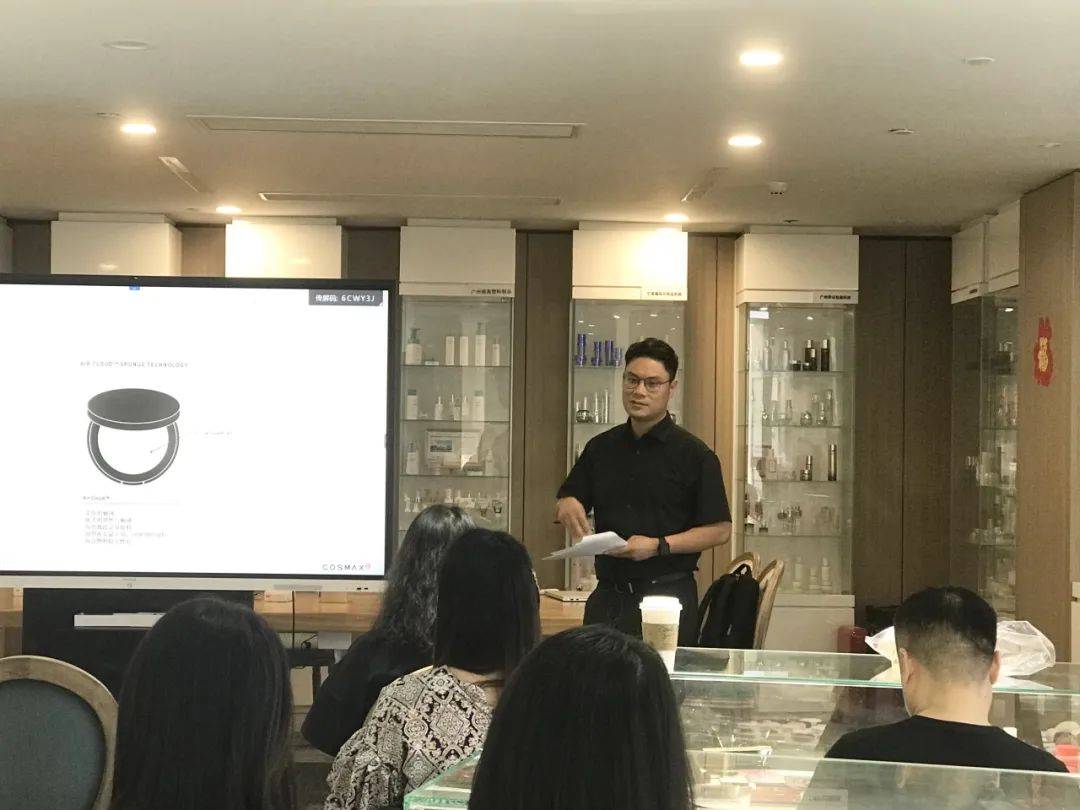 科絲美詩廣州研究所金成勇所長在《氣墊底妝品類發(fā)展趨勢及創(chuàng)新》研討會(huì)上發(fā)言