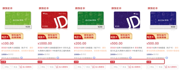 這里再叮囑一句,京東E卡有實體卡與電子卡之分,商品頁面會有相關(guān)標(biāo)識,購買時務(wù)必認(rèn)準(zhǔn),以免帶來不便。