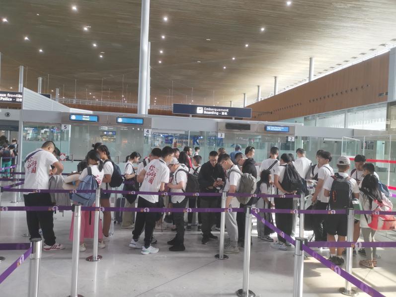 東航特別為夏令營團(tuán)隊開放了專屬邊防過關(guān)柜臺,簡化值機手續(xù)。