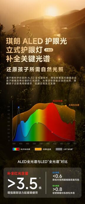 為此,琪朗以“為人類創(chuàng)造舒適的健康光環(huán)境”為使命,致力打造中國千萬兒童房專用護眼光環(huán)境。2022年,琪朗聯(lián)合中山大學中山眼科中心共同研發(fā)全新專利技術ALED護眼光。新一代ALED護眼光其原理是打造與太陽光的可見光譜接近的照明光譜,通過降低有害藍光峰值,補全孩子眼睛發(fā)育關鍵的紅光波段,緩解孩子近距離用眼疲勞,延緩近視發(fā)生發(fā)展。自從愛迪生發(fā)明光源以來,經歷了白熾燈、鹵素燈、熒光燈、LED燈后,ALED護眼光是人類史上最近接太陽光譜的光源,其光源更護眼,更舒適,更健康。