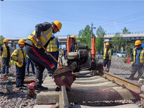 上午8時(shí)許,隨著駐站聯(lián)絡(luò)員精準(zhǔn)的天窗施工報(bào)點(diǎn)后,上、下行線共200余名作業(yè)人員迅速上道,開始鋸軌、清除既有線枕木頭及枕木盒道碴、整平既有道床、撥移既有線路與預(yù)鋪線路連接等工作,并在線路撥移到位后,迅速進(jìn)行鋼軌焊接、上碴整道、大機(jī)搗固、精調(diào)等作業(yè)。隨后,工務(wù)檢查軌道靜態(tài)幾何尺寸,并進(jìn)行電氣信號(hào)聯(lián)鎖試驗(yàn),于中午12:30分左右完成施工,恢復(fù)線路。為確保營(yíng)業(yè)線施工安全質(zhì)量進(jìn)度全面受控,項(xiàng)目部超前謀劃,統(tǒng)籌組織,突出關(guān)鍵環(huán)節(jié)和重點(diǎn)工序,從資源配置、方案優(yōu)化、安全質(zhì)量等方面入手,明確責(zé)任分工,優(yōu)化組織設(shè)計(jì),動(dòng)態(tài)跟蹤調(diào)整,并嚴(yán)格按照鐵路部門有關(guān)文件要求設(shè)置封鎖及慢行防護(hù),最終圓滿完成了撥接施工任務(wù)。