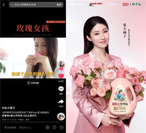再加上與時尚媒體《嘉人》的合作,使得立白大師香氛品牌和抖音頭部達(dá)人都獲得了更為有力的時尚背書。