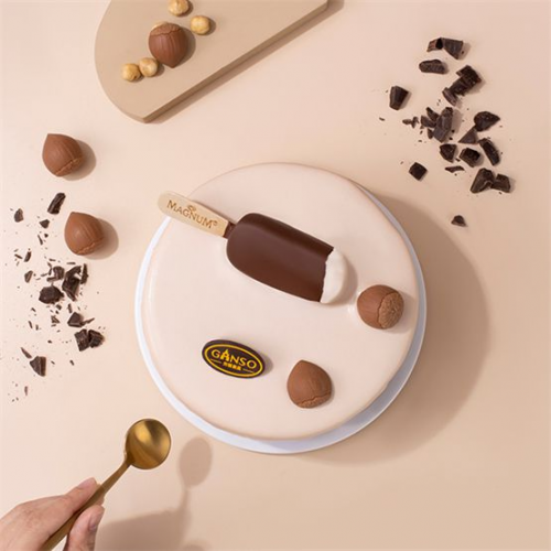 意式榛子巧克力味元夢(mèng)絲巧冰淇淋蛋糕盡展?jié)庥麸L(fēng)情,在奶油淋面上是夢(mèng)龍標(biāo)志性的香草巧克力口味雪糕和仿真立體榛子裝飾插件,內(nèi)里是土耳其進(jìn)口榛子醬制成的榛子口味冰淇淋和進(jìn)口可可制成的巧克力口味冰淇淋,再配上酥脆巴旦木,層層香脆絲滑迸發(fā)多重驚喜口感。這款冰淇淋蛋糕上市后,以無限創(chuàng)意和濃郁風(fēng)味圈粉無數(shù)年輕人,成為了盛夏消暑降溫的美味之選。