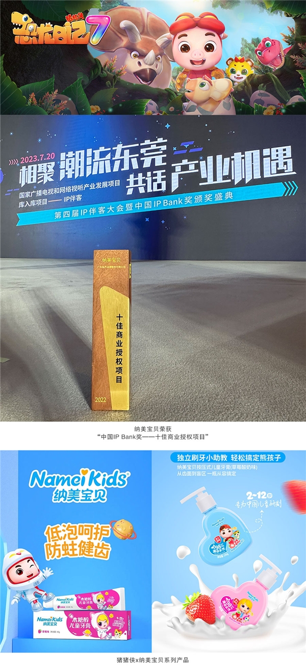 其中,豬豬俠攜手納美寶貝,開發(fā)了20多款備受消費者青睞的兒童口腔護理產(chǎn)品,并在沃爾瑪、大潤發(fā)、永輝等全國優(yōu)質商超上線,該系列產(chǎn)品在兒童牙膏/牙刷品類實現(xiàn)細分領域市場排名前十,榮獲“中國IP Bank獎——十佳商業(yè)授權項目”。目前,詠聲動漫旗下各大IP授權合作覆蓋玩具、食品、文具、家居日化用品、游戲、出版物、主題業(yè)態(tài)等共計12個行業(yè),衍生品品類達上百種,年零售市值超50億元。