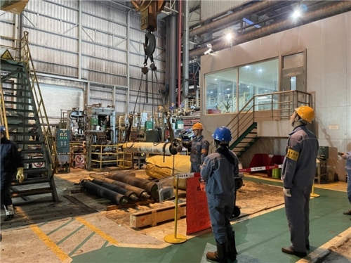 專、研在這里,抓住重點(diǎn)迎難而上,這次定修中有好多項(xiàng)目首次碰到,對這些史無前例的吊運(yùn)作業(yè),精心組織、周密部署、根據(jù)各機(jī)組的空間結(jié)構(gòu)制定的吊運(yùn)方案,尤其是3#CGL熱鍍鋅C808機(jī)組鋅鍋技改項(xiàng)目增加鋅鍋感應(yīng)加熱器線圈套裝任務(wù),中冶寶鋼基層單位認(rèn)真梳理吊裝成功的經(jīng)驗(yàn),大膽創(chuàng)新,建議施工方采用三級指揮方式進(jìn)行指揮吊裝作業(yè),并使用專業(yè)工具橋架直接吊運(yùn),兩端使用麻繩做牽引固定,從C808機(jī)組9層平臺至上而下,省略了諸多中間環(huán)節(jié),打破崗位壁壘的束縛,僅僅只用了一個(gè)晝夜的時(shí)間,鋅鍋感應(yīng)加熱器線圈順利吊裝就位。比原定計(jì)劃提前了一天時(shí)間。