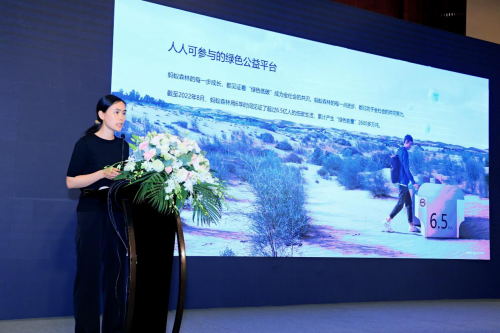 螞蟻集團可持續(xù)綠色公益部高級專家范敏分享了螞蟻森林參與保護地建設的實踐案例。螞蟻森林用“綠色能量”激勵公眾踐行綠色低碳行為,并引導用戶用綠色能量兌換生態(tài)保護修復公益項目。圍繞大熊貓棲息地修復,螞蟻森林已經通過SEE基金會等公益機構在四川涼山州植樹造林超過1萬畝;螞蟻森林還積極參與大熊貓保護工作,2018年至今已經與自然保護機構合作支持了關壩、福壽、老河溝、柏林、鞍子河、新龍和八月林共7個公益保護地建設,總計守護面積超過279平方公里,并支持開發(fā)大熊貓國家公園生態(tài)產品。