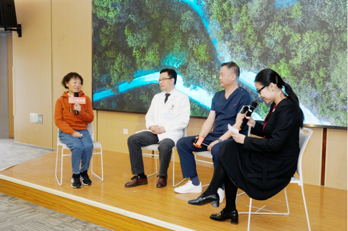 其中的芙蓉女士從四川遠(yuǎn)道而來,與兩位醫(yī)學(xué)大咖和主持人圍坐在一起,現(xiàn)場(chǎng)分享了自己患病以來的心路歷程和診療經(jīng)過,共同探討了內(nèi)(科)外(科)兼修實(shí)現(xiàn)長期生存之道的經(jīng)驗(yàn)與思路等話題。