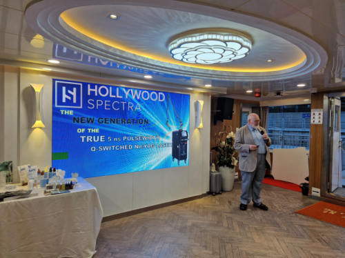 在游船特約演講中,Dr,Glen 著重介紹了路創(chuàng)麗即將在中國(guó)市場(chǎng)重磅上市的旗艦調(diào)Q Nd:YAG設(shè)備 Spectra Pro 的創(chuàng)新理念、技術(shù)優(yōu)勢(shì)及臨床應(yīng)用。
