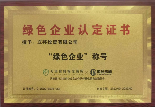 立邦獲得綠色企業(yè)認(rèn)定證書(shū)