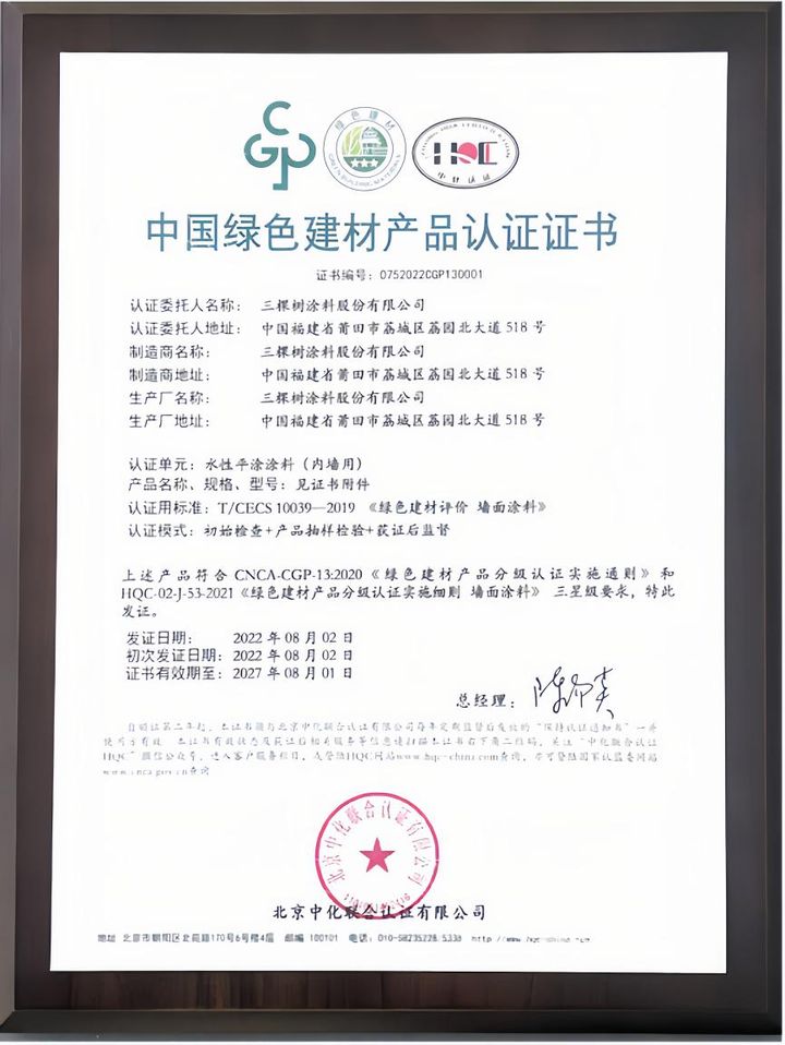3月31日,以“綠色建材進(jìn)萬家 美好生活共創(chuàng)建”為主題的全國綠色建材下鄉(xiāng)活動福建站啟動會在泉州南安舉行。三棵樹憑借綠色建材下鄉(xiāng)方面的突出貢獻(xiàn)獲得“綠色建材下鄉(xiāng)活動-惠民行動領(lǐng)軍企業(yè)”稱號,多款綠色產(chǎn)品獲得中國綠色建材產(chǎn)品認(rèn)證證書。