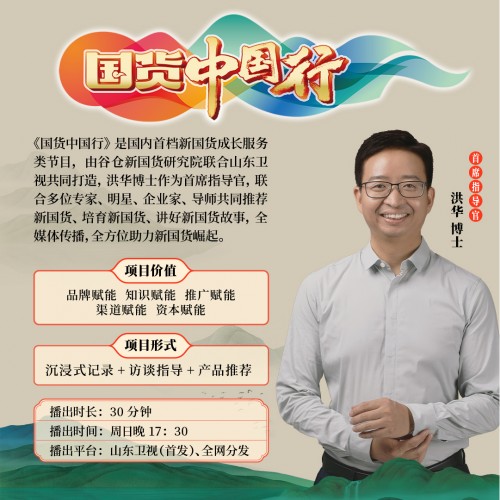 2022年,谷倉(cāng)新國(guó)貨研究院?jiǎn)?dòng)全新的新國(guó)貨培育戰(zhàn)略,以用戶為核心,通過爆品戰(zhàn)略、品牌戰(zhàn)略和流量戰(zhàn)略三大戰(zhàn)略推動(dòng)新國(guó)貨崛起。除此之外,谷倉(cāng)新國(guó)貨研究院聯(lián)合山東衛(wèi)視重磅打造中國(guó)首檔新國(guó)貨成長(zhǎng)服務(wù)類節(jié)目《國(guó)貨中國(guó)行》,洪華博士作為首席指導(dǎo)官,聯(lián)合多位專家、明星、企業(yè)家、導(dǎo)師共同推薦新國(guó)貨、培育新國(guó)貨、講好新國(guó)貨故事,全媒體傳播,全方位助力新國(guó)貨崛起。