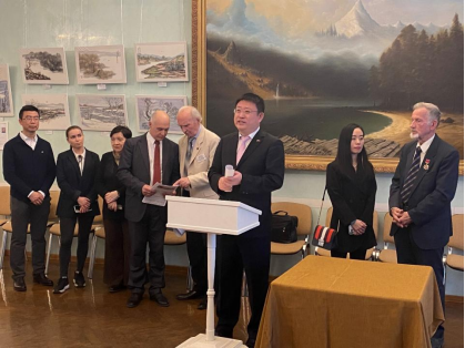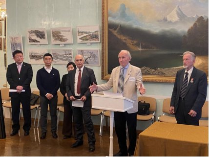 中俄人文合作發(fā)展中心理事長尹斌先生在發(fā)言中談到:“藝術(shù)家劉子輿先生在莫斯科生活多年,在此期間,他給很多俄羅斯人傳授中國的水墨,為發(fā)揚中國文化作出了巨大貢獻?!?/p>