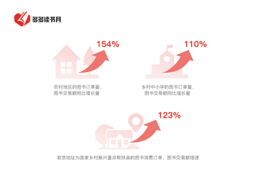 在兩季“多多讀書月”活動(dòng)期間,來(lái)自偏遠(yuǎn)地區(qū)的圖書訂單量、圖書交易額均得到快速增長(zhǎng)。圖源《2021多多閱讀報(bào)告》