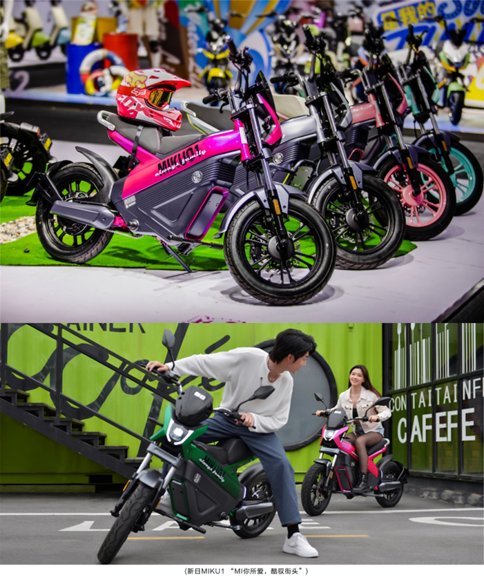 “MI你所愛 酷馭街頭”MIKU1:設(shè)計靈感來自于賽博朋克,極具未來感的機車外表,在“后現(xiàn)代迷幻美學”的賦能下,擁有了更加科幻的潮流美感,瞬間拉近與年輕人的溝通距離;