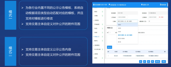 靈活的建設工程交易系統(tǒng)。系統(tǒng)提供通用接口,接收各平臺推送的項目信息,實現與上下游系統(tǒng)數據的聯(lián)通,保證數據準確性,同時減輕交易主體在各個系統(tǒng)的反復錄入工作。系統(tǒng)支持用戶自由選擇范本和公示公告模式,提供“隨意化”的在線編標方式,還通過內置多種任務自動分配方式,滿足各部門管理方式的多樣性需求。