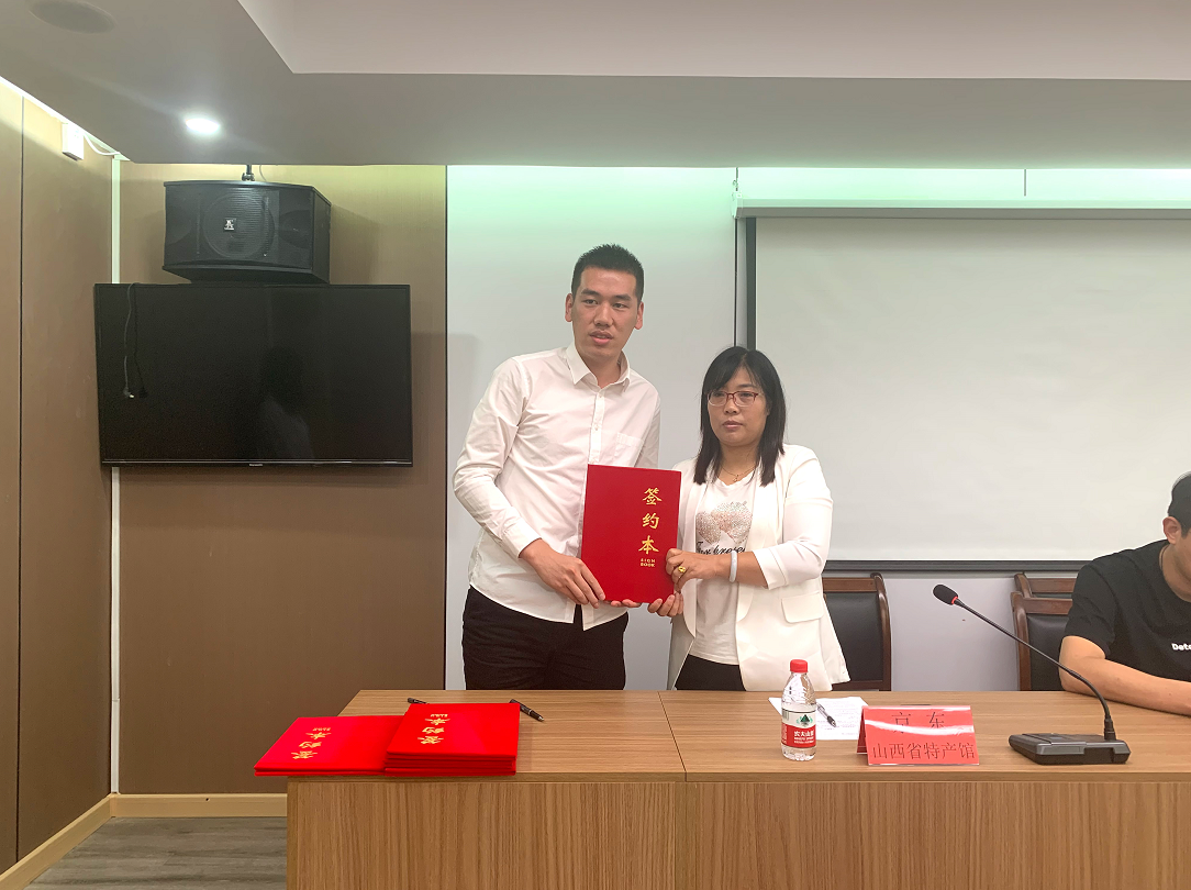 此次產銷對接會上,浮山縣康杰副食品有限公司郭杰、山西堯田農業(yè)科技股份有限公司張振東以及浮山縣神山土特產品加工有限公司李準作為農產品企業(yè)代表上臺做重點推介。對接會現(xiàn)場專門設置了浮山農產品展示區(qū),便于能近距離感受和體驗浮山的特色農產品,現(xiàn)場洽談對接氛圍熱烈,隨后京東特產館負責人代表京東平臺與到場的13家企業(yè)簽訂產銷合同,達成戰(zhàn)略合作協(xié)議。
