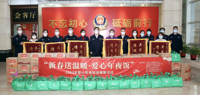 由中國企業(yè)報福建公司發(fā)起的“2023愛心年夜飯送輔警活動”第三個中國人民警察節(jié)當(dāng)天在廈門市公安局大院隆重舉行,來自羅普特科技集團股份有限公司、福建重宇合眾律師事務(wù)所、廈門綠進食品有限公司、廈門達川臻富食品有限公司、廈門見福連鎖管理有限公司等愛心企業(yè)為廈門輔警支隊一線輔警送來了節(jié)日的問候和預(yù)制菜、油、果汁等愛心年夜飯“大禮包”,以及口罩等防疫物資,向奮斗在在一線守護廈門城市平安的執(zhí)勤輔警表示感激和敬意。