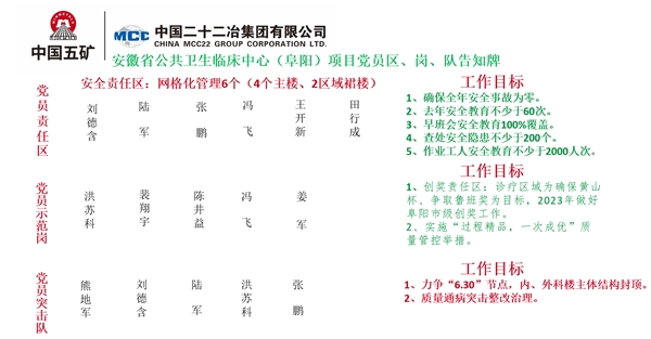 一名黨員就是一面旗幟,為充分發(fā)揮黨員先鋒模范作用,針對目前項目大干“春耕”階段,全體黨員職工放棄節(jié)假日休息,堅守在施工現(xiàn)場。據(jù)中國二十二冶江蘇公司阜陽醫(yī)院項目部執(zhí)行經(jīng)理劉德含介紹,項目部每天進行一個班前例會講話,提醒施工當天的質(zhì)量風險點,安全風險點,對工人安全施工進行警示教育,后續(xù)過程中項目部加強現(xiàn)場一個巡查現(xiàn)場技術(shù)人員,班組長,現(xiàn)場監(jiān)理,監(jiān)理人員業(yè)主代表共同組織班前的巡查施工過程中的巡查,提醒工人規(guī)避相關(guān)的風險點,確保工人施工的安全,為確保夜間施工正常推進。黨支部組織了黨員安全夜查活動,每晚由一名黨員帶領各班組長深入現(xiàn)場對一線施工情況進行檢查;劃分黨員安全責任區(qū),比標準、比進度、比質(zhì)量、比安全,調(diào)動激發(fā)黨員積極性,增強責任感和安全意識,牢固樹立“安全第一”的思想;邀請勞務隊農(nóng)民工黨員代表列席黨支部組織的講安全專題黨課、安全生產(chǎn)公開課等活動,筑牢思想防線、強化政治定位、調(diào)動工作主動性、增強集體榮譽感,確保安全生產(chǎn)工作的穩(wěn)步推進。