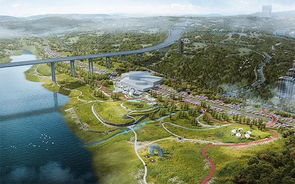 “長(zhǎng)江文化藝術(shù)灣區(qū)是重慶對(duì)外展現(xiàn)‘山水之城、美麗之地’的重要窗口,我們提出大自然是演奏家的想法,讓長(zhǎng)江與音樂(lè)的相遇,生態(tài)與音樂(lè)的交織?!焙魏槊氛f(shuō),因此項(xiàng)目在設(shè)計(jì)時(shí)便確定,微改造、巧利用現(xiàn)有草海、森林、江灘等資源,貫通步道體系,聯(lián)動(dòng)周邊公共設(shè)施。