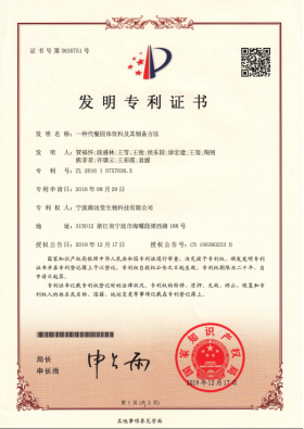 國(guó)家發(fā)明專利證書(shū)-肽素乳固體飲料及其制備方法