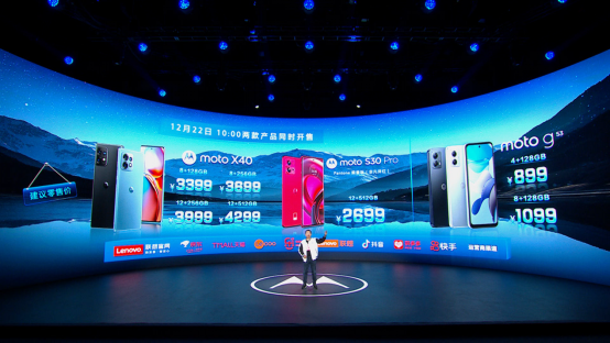 2022年12月15日19時(shí)30分,聯(lián)想moto召開了以“心無畏,赴山海”為主題的新品發(fā)布會(huì),正式發(fā)布了moto X40、moto G53和moto S30 Pro潘通限量版(非凡洋紅)三款新品。其中,“手機(jī)中的SUV”moto X40,首發(fā)價(jià)3399元起;“千元5G全擊手”moto G53,首發(fā)價(jià)899元起;而moto S30 Pro潘通限量版(非凡洋紅),首發(fā)價(jià)則是2699元起。