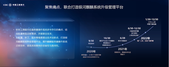 本次新品發(fā)布環(huán)節(jié)中,由工商銀行和麒麟軟件聯(lián)手推出的“銀河麒麟系統(tǒng)升級(jí)管理平臺(tái)”引起廣泛關(guān)注。該平臺(tái)是首款國產(chǎn)服務(wù)器操作系統(tǒng)集約化管理平臺(tái)創(chuàng)新產(chǎn)品。基于行業(yè)痛點(diǎn)深度打磨,擁有自動(dòng)化漏洞發(fā)現(xiàn)與補(bǔ)丁安裝、精細(xì)化系統(tǒng)配置管控兩大核心功能,現(xiàn)已納管超10000套銀河麒麟服務(wù)器操作系統(tǒng)環(huán)境且穩(wěn)定運(yùn)行,成為業(yè)內(nèi)標(biāo)桿。