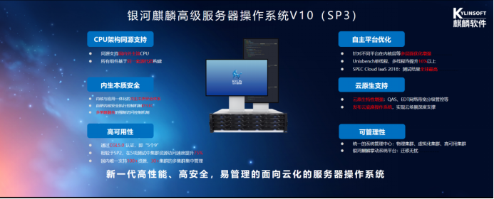銀河麒麟高級(jí)服務(wù)器操作系統(tǒng)V10(SP3)堪稱安全可信操作系統(tǒng)界的“擎天柱”,強(qiáng)安全、高可靠的特性,可實(shí)現(xiàn)數(shù)字化轉(zhuǎn)型七大典型業(yè)務(wù)場景的全覆蓋;銀河麒麟嵌入式操作系統(tǒng)V10隱秘而偉大,是面向物聯(lián)網(wǎng)及工業(yè)互聯(lián)網(wǎng)場景需求的安全實(shí)時(shí)操作系統(tǒng);星光麒麟操作系統(tǒng)1.0是基于Linux內(nèi)核自主研發(fā)、擁有核心知識(shí)產(chǎn)權(quán)、面向全場景的萬物智聯(lián)操作系統(tǒng),重點(diǎn)覆蓋平板、大屏、手持設(shè)備和可穿戴設(shè)備業(yè)務(wù)需求,并全面適配國產(chǎn)主流移動(dòng)芯片。