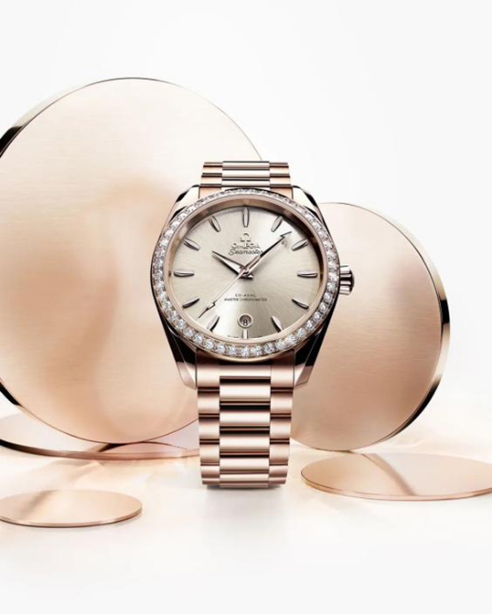 當然,對于想要在基礎款式之上展露更多個人特色的女生來說,足夠特別才足夠令人喜歡。Aqua Terra Shades腕表有一款38毫米的全金腕表,采用歐米茄獨家研發(fā)的Sedna 18K金打造而成,這一獨特的紅色18K金色澤雅致,且不易褪色。表圈鑲飾46顆閃耀美鉆,共1.77克拉。砂巖色表盤經CVD技術打造,呈現出太陽射線的打磨效果。