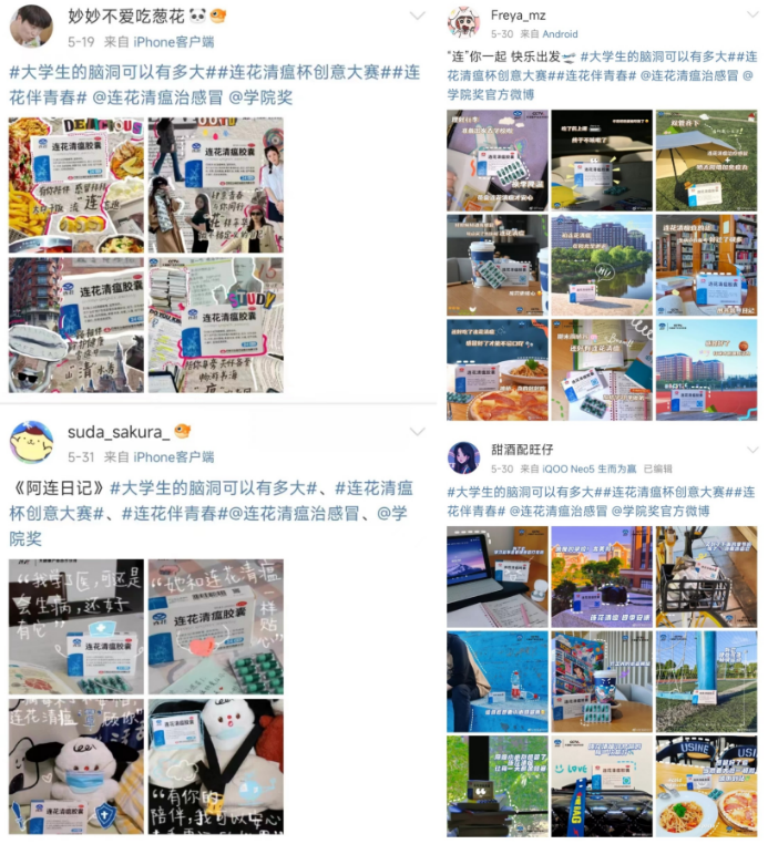2023年2月1日-5月20日,第二屆“連花清瘟杯”大學(xué)生創(chuàng)意大賽第二階段活力延續(xù),面向全國1800+所高校創(chuàng)意發(fā)題,收獲高校學(xué)子熱情參與。此階段創(chuàng)意征集,連花清瘟共收到來自全國高校的11664組、15057件創(chuàng)意作品,涉及平面廣告、Plog、影視廣告、短視頻、廣告文案及營銷策劃6大類別。經(jīng)過院校初審及一階段評審后,千余件作品脫穎而出,順利晉級復(fù)、終評,一場硬核作品的巔峰對決正式燃情開啟!