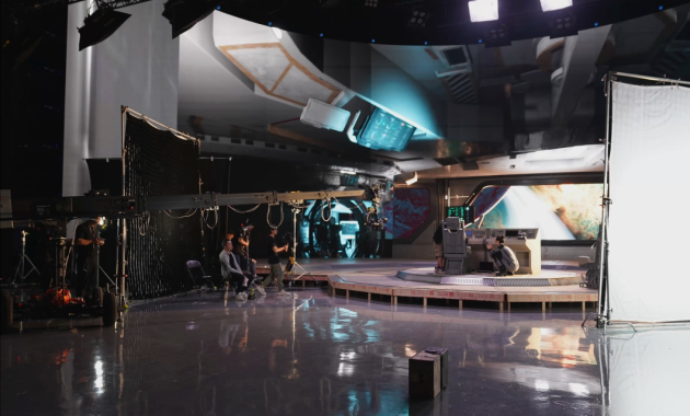 它創(chuàng)造了一個沉浸式的拍攝場景,攝影師可以像拍攝真實(shí)的物體一樣取景,演員能與虛擬可見場景直接互動,與傳統(tǒng)的空曠綠幕舞臺相比對演員更友好,能使其快速入戲,演繹角色。