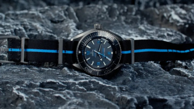 為了應對6000米的超強水壓,鈦金屬版本的表耳造型比較獨特,它跟表殼一體成型,在當中做了斷開處理,搭配歐米茄NATO表帶,舒適輕便。