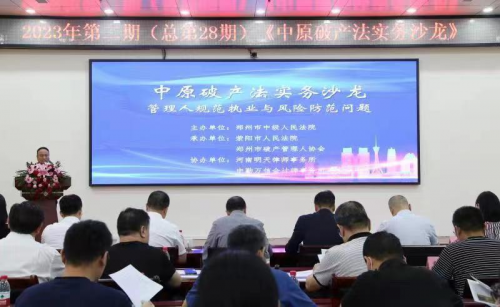 為進一步提高破產審判專業(yè)化水平,優(yōu)化法治化營商環(huán)境,以破產審判服務保障經(jīng)濟高質量發(fā)展。6月3日下午,由鄭州市中級人民法院主辦,滎陽市人民法院、鄭州市破產管理人協(xié)會承辦的2023年度第二期中原破產法實務沙龍在滎陽市人民法院舉辦。來自政府、法院、高校及從事破產實務、理論研究的省內外專家、法官、管理人代表等110余人現(xiàn)場參加沙龍活動。該期沙龍由鄭州市中級人民法院清算與破產審判庭副庭長陳丕運主持。