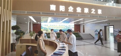 近日,調(diào)研組走進(jìn)南陽(yáng)市企業(yè)服務(wù)中心。這座毗鄰南陽(yáng)行政審批服務(wù)中心的建筑物恢弘大氣、設(shè)施完備、環(huán)境溫馨。南陽(yáng)市企業(yè)服務(wù)中心建筑面積1.2萬(wàn)平方米,是中部地區(qū)最大的企業(yè)服務(wù)實(shí)體大廳。該中心以“全賦能、心服務(wù)”為核心理念,設(shè)訴求響應(yīng)、中介服務(wù)、企業(yè)家素質(zhì)提升和精品展示四大功能區(qū),通過“一網(wǎng)六部一講堂”為主架構(gòu)的線上線下聯(lián)動(dòng)機(jī)制,為企業(yè)提供全生命周期呵護(hù)、全鏈條體系支持、全需求要素保障、全方位素質(zhì)提升、全市場(chǎng)主體覆蓋、全流程精準(zhǔn)服務(wù)的六全一站式服務(wù)。